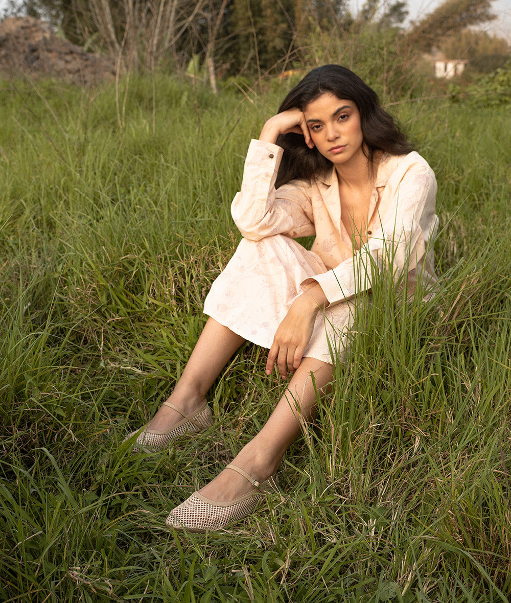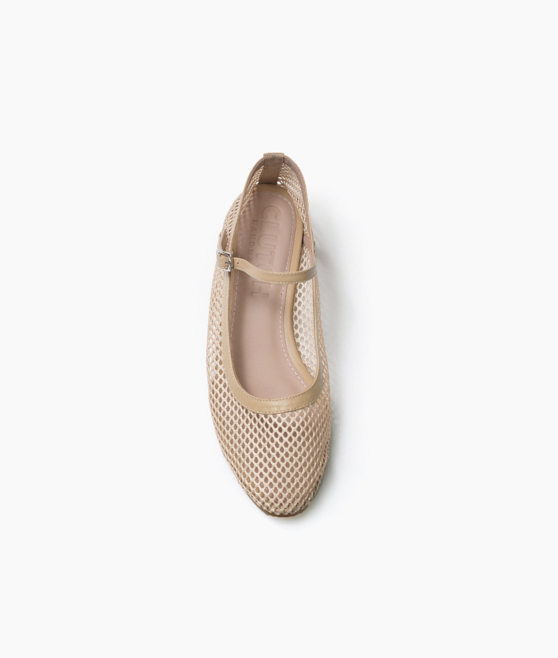 Nos unimos a la tendencia en flats que verás durante toda esta temporada. Nuestros flats Cayetana de punta redonda hechos de una malla calada y cuero.