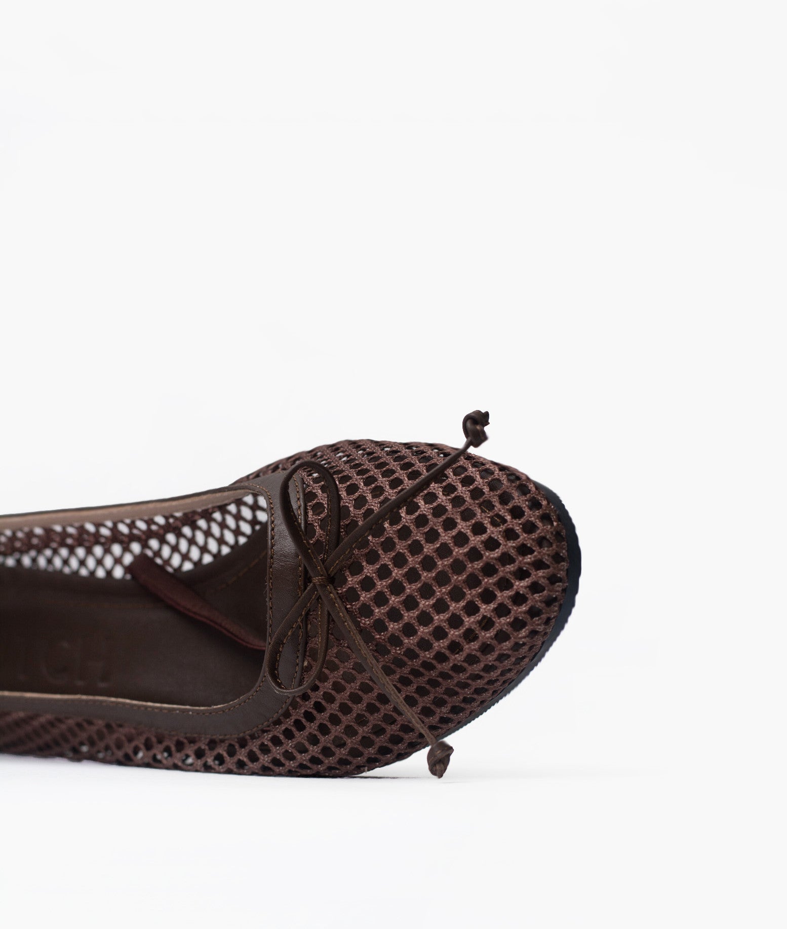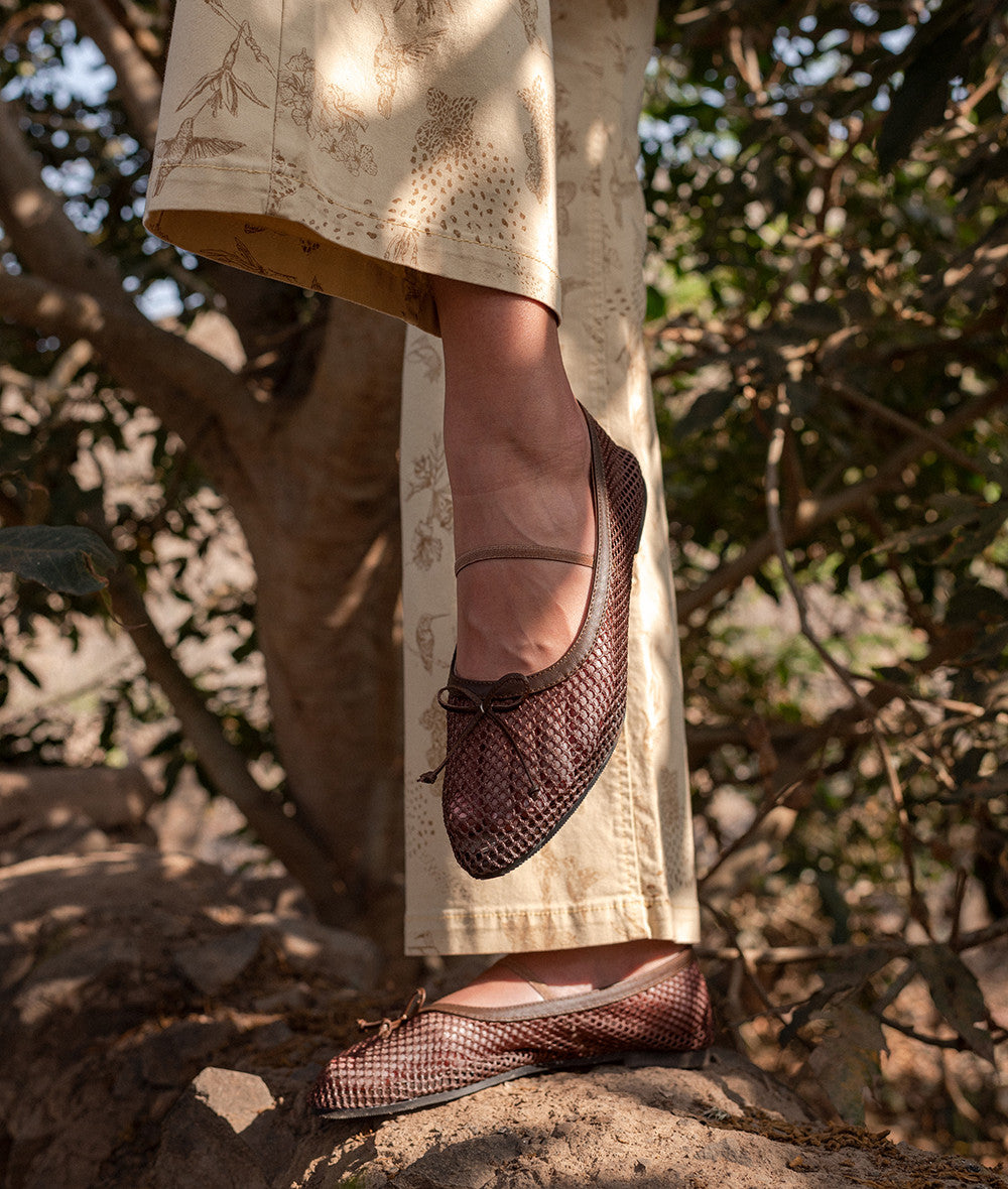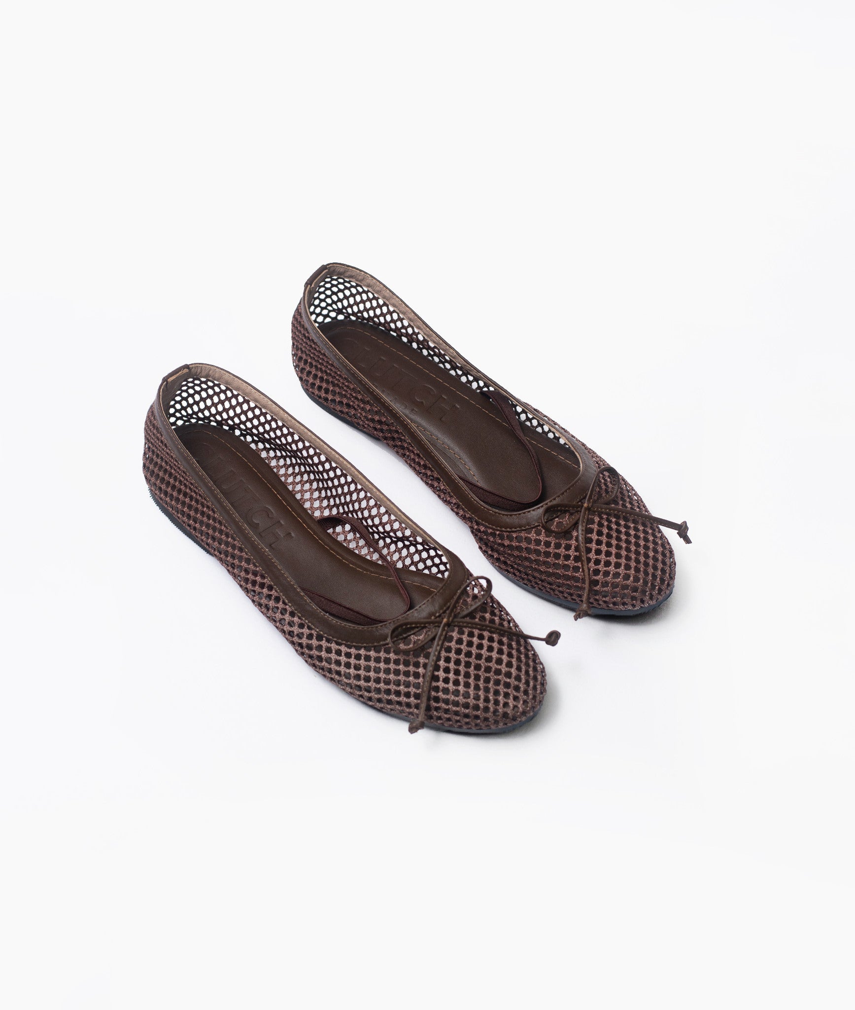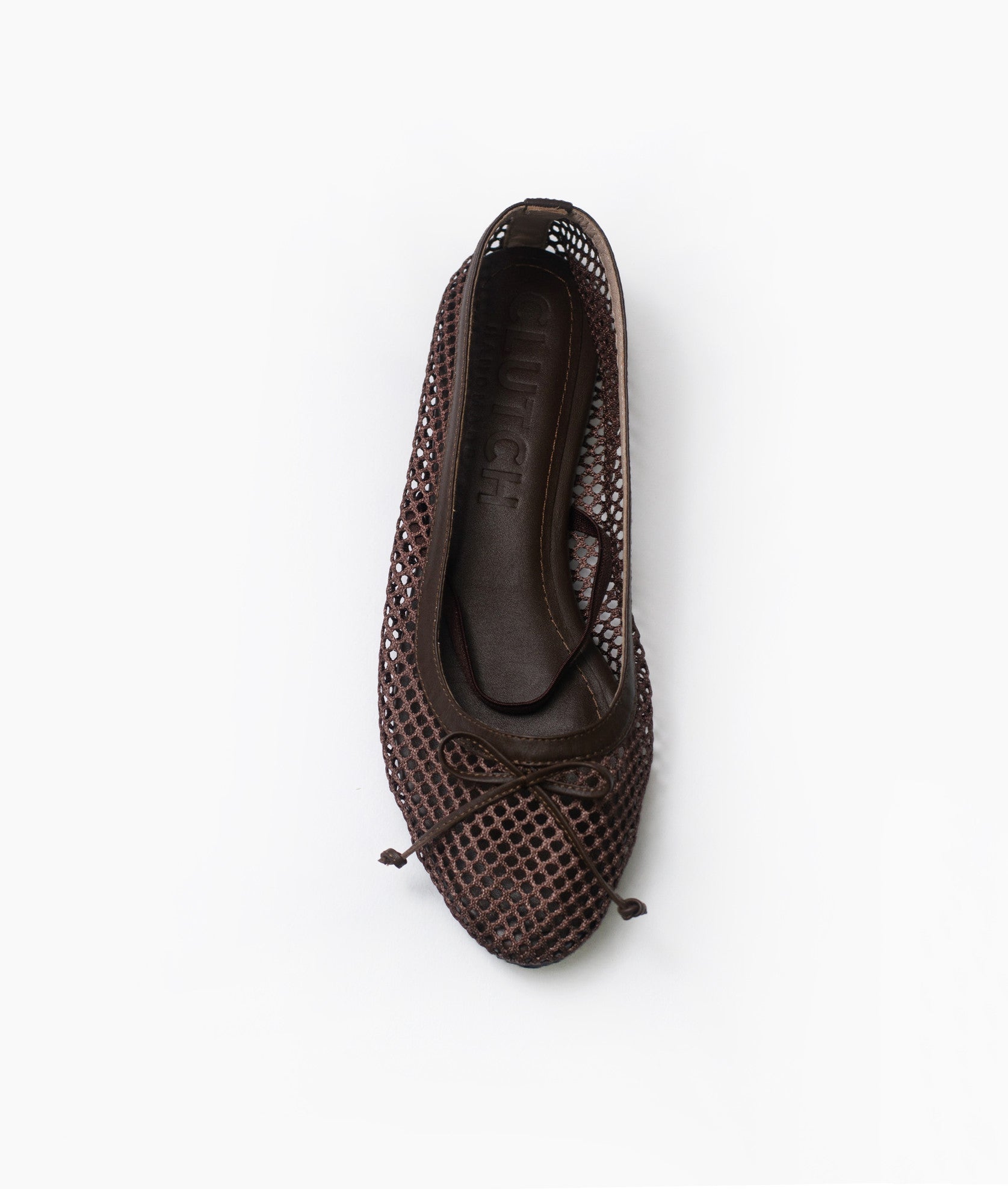 Nos unimos a la tendencia en flats que verás durante toda esta temporada. Nuestros flats Cayetana de punta redonda hechos de una malla calada y cuero.