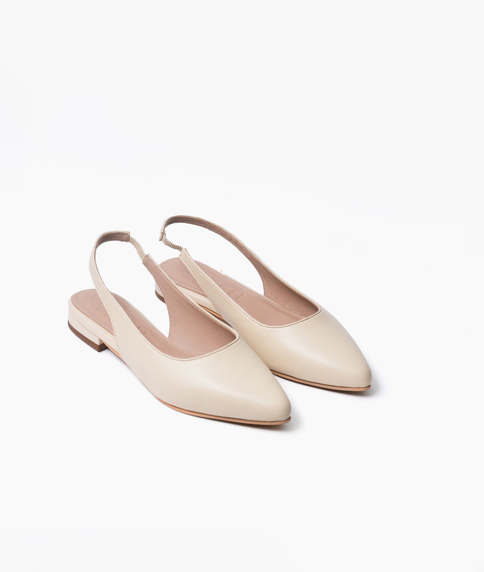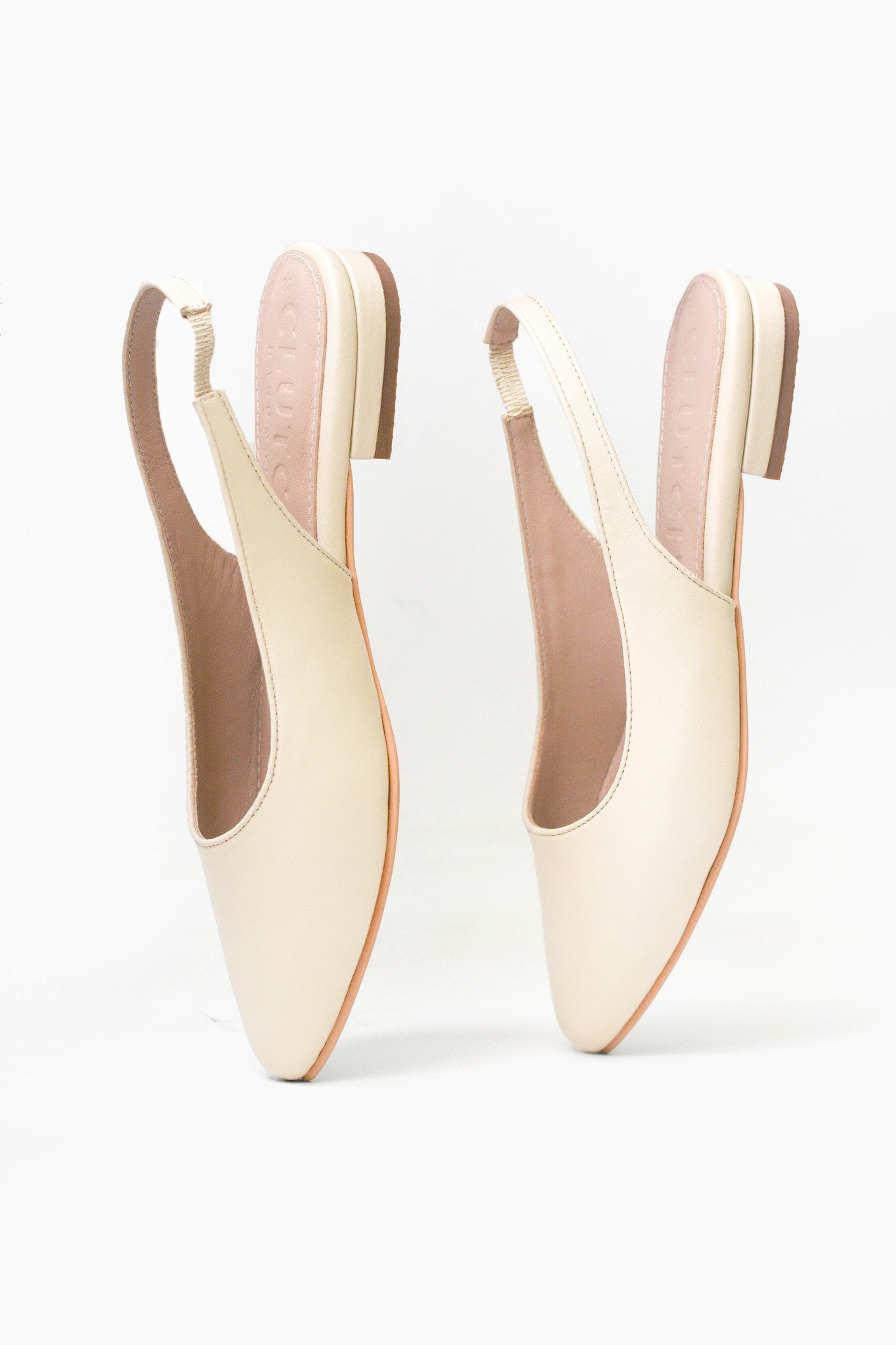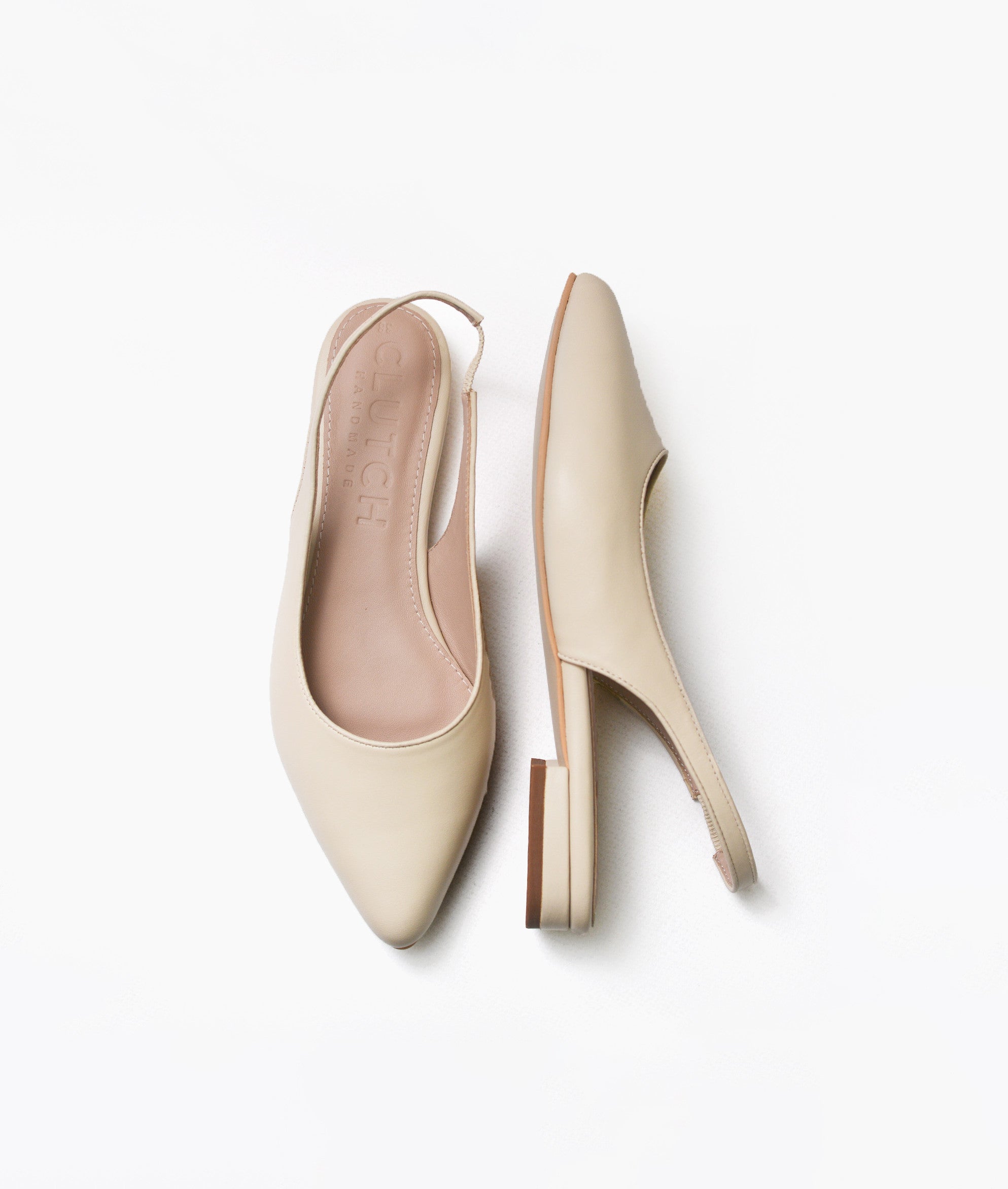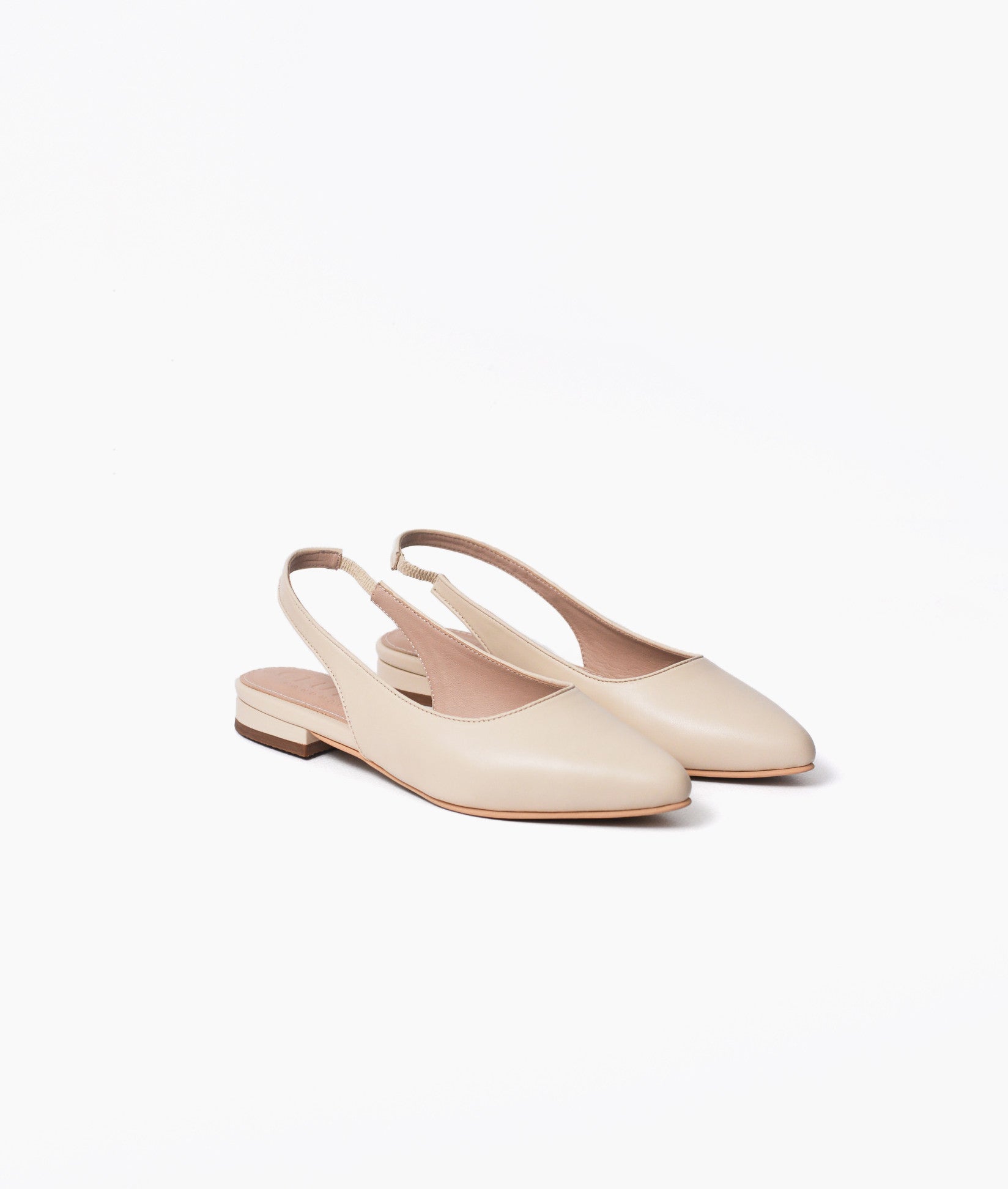 Flats estilo sling back. Taco de 2cm. Hecho a mano en cuero.