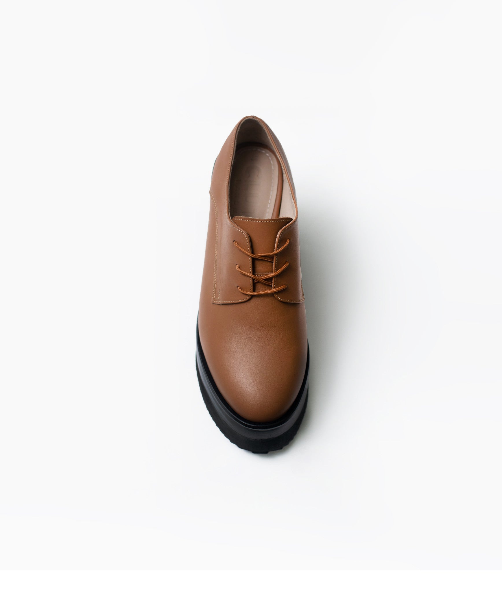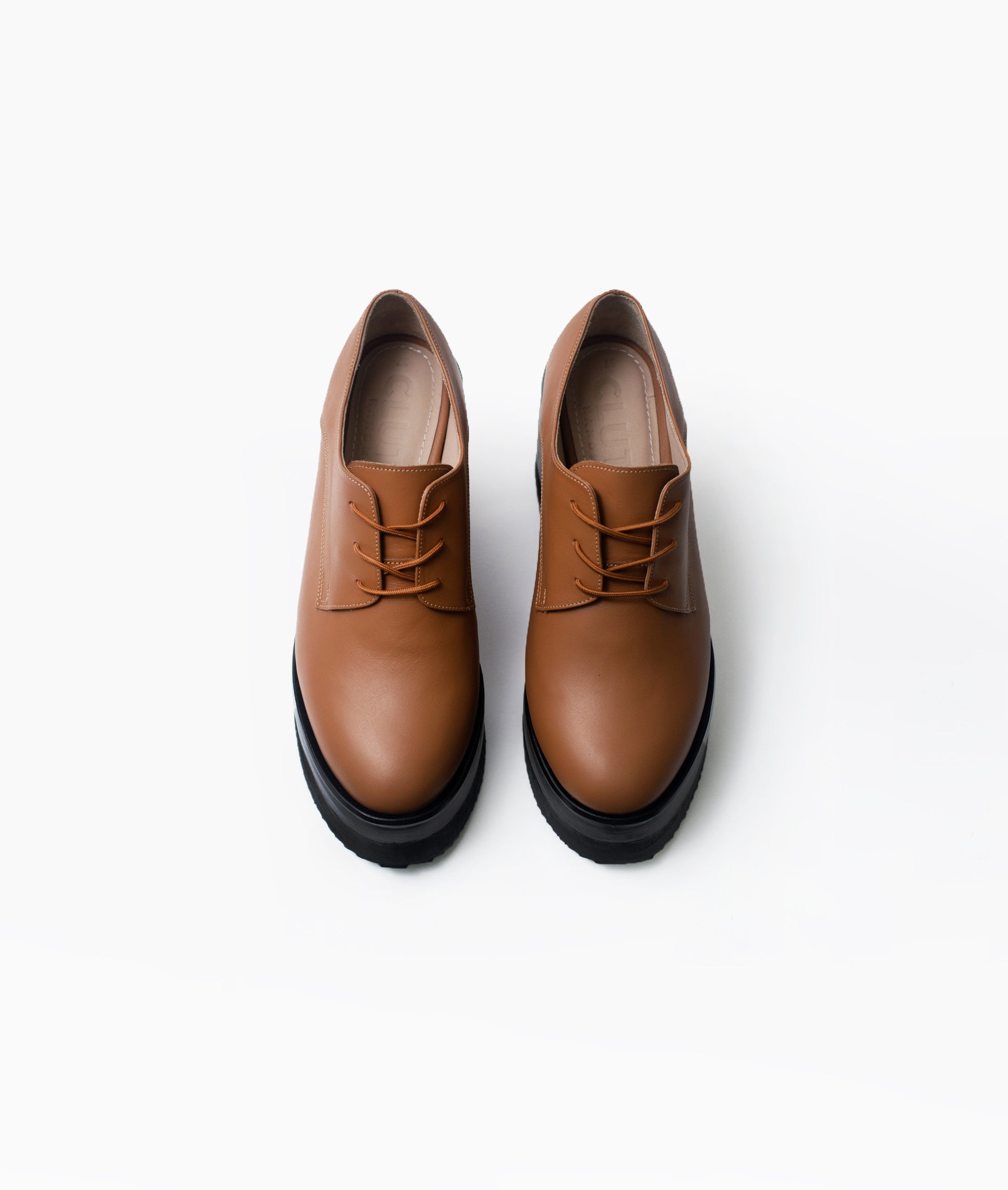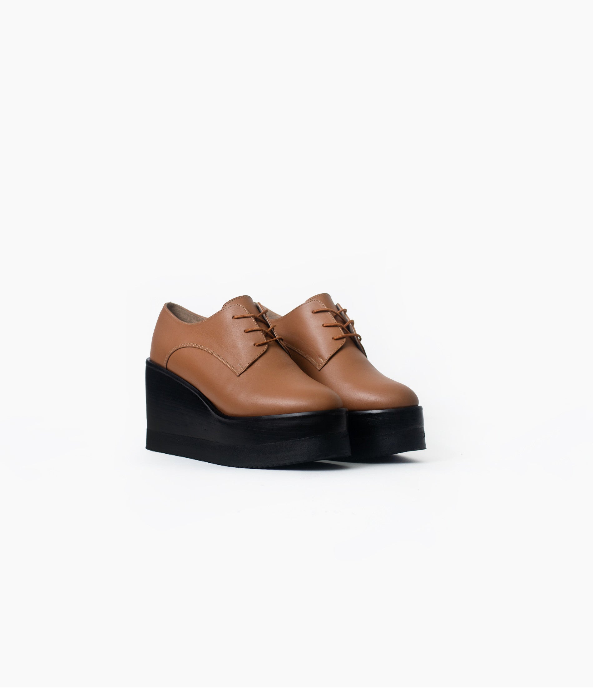 Milán, oxfords con plataforma de madera. Hecho a mano en cuero.