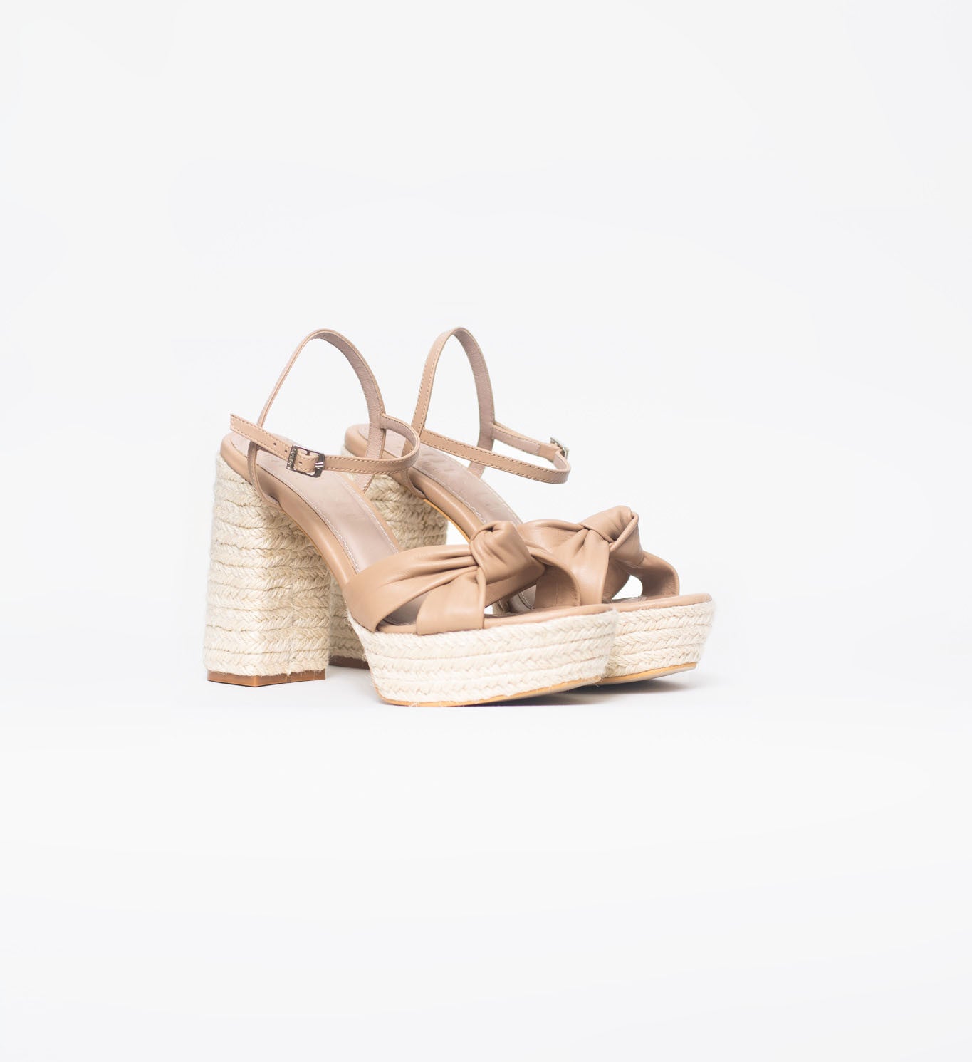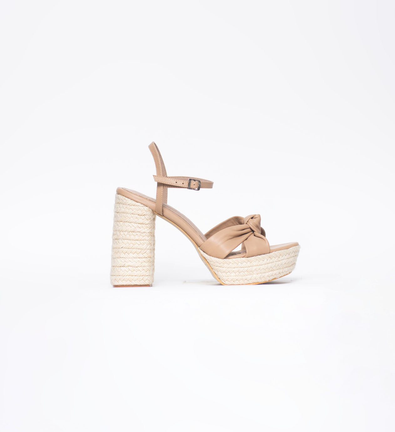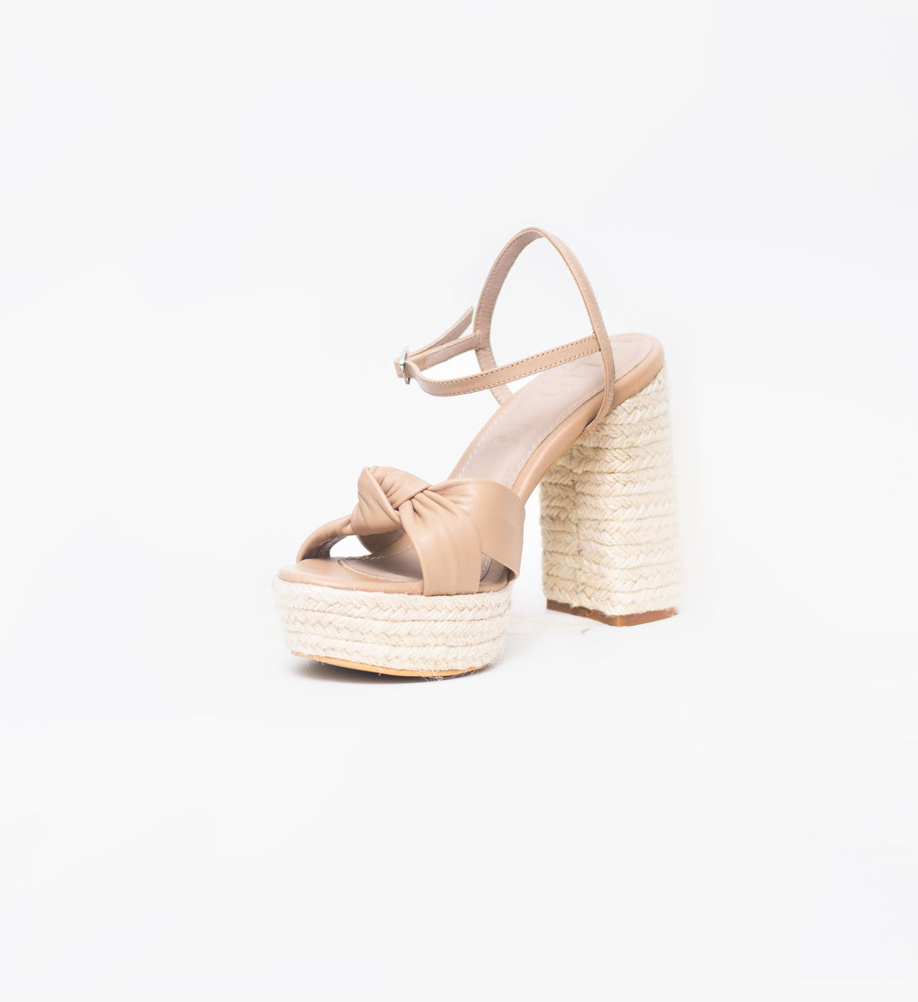 Eleva tu estilo con nuestras sandalias de plataforma Stella, con un taco grueso para más comodidad. El nudo en el empeine y el color las con convierten en un clásico instantáneo, ideal para cualquier ocasión. Su taco y plataforma forrada en soguilla le da ese toque de verano ideal.