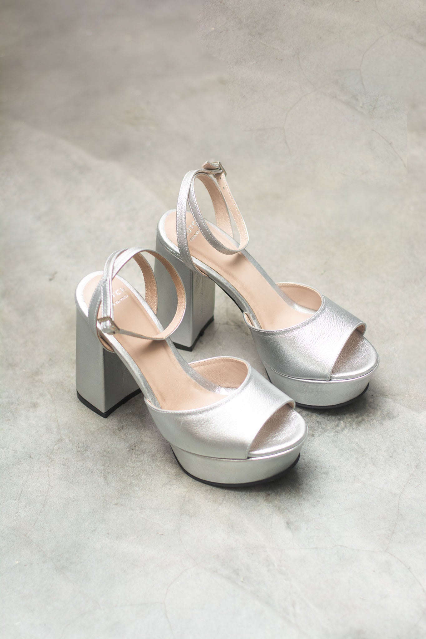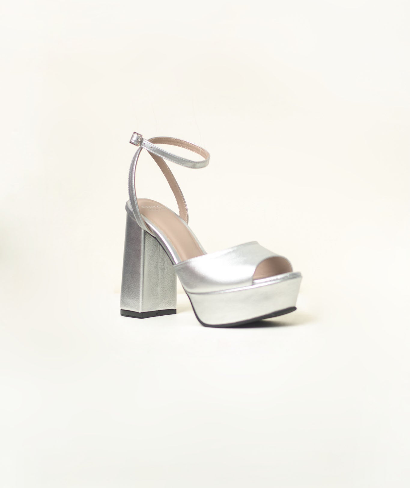 Cuero nude y dorado metalizado.