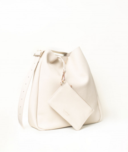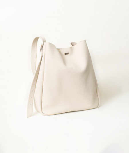 Cartera estilo tote con base plana, cierre imantado. 100% cuero.