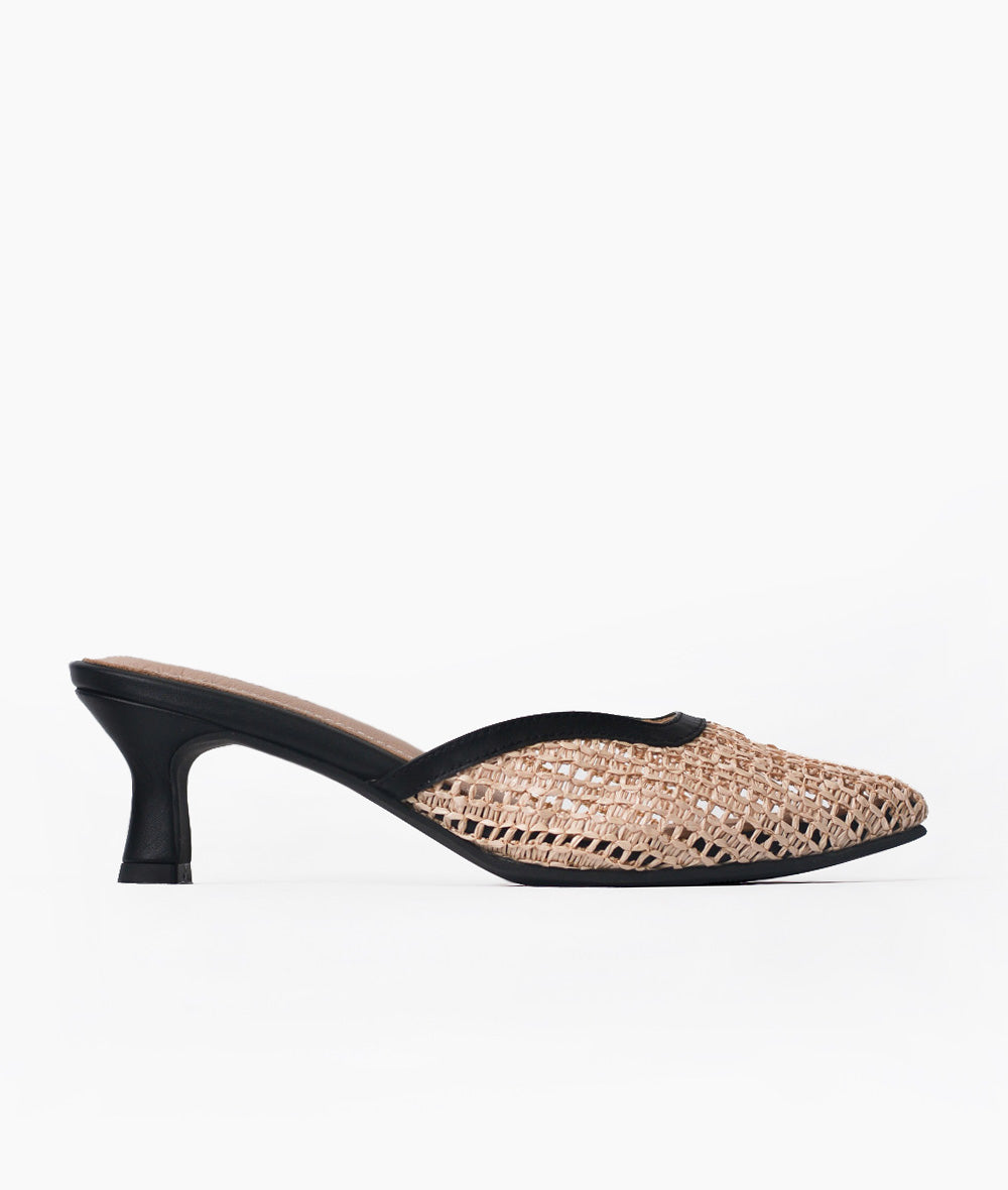 Stilettos de cuero y rafia.